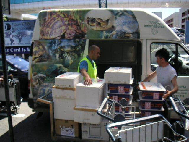 Over 40.000 animals were saved, reintroduces, translocated or inserted in programmes of specialised fauna centers: tortoises and turtles (CARAPAX, Italy Britisch Chelonia Group UK, Born Free UK, Dutch Turtle Foundation, SOPTOM France, CRT Spain), birds (Bird Protection Societies, Belgian VOC centers), monkeys (AAP Foundation the Netherlands, Parrots (NOP Holland). Most actions were logistically supported by airlines: VIRGIN, KLM, Brussels Airlines, Olympic Airways…